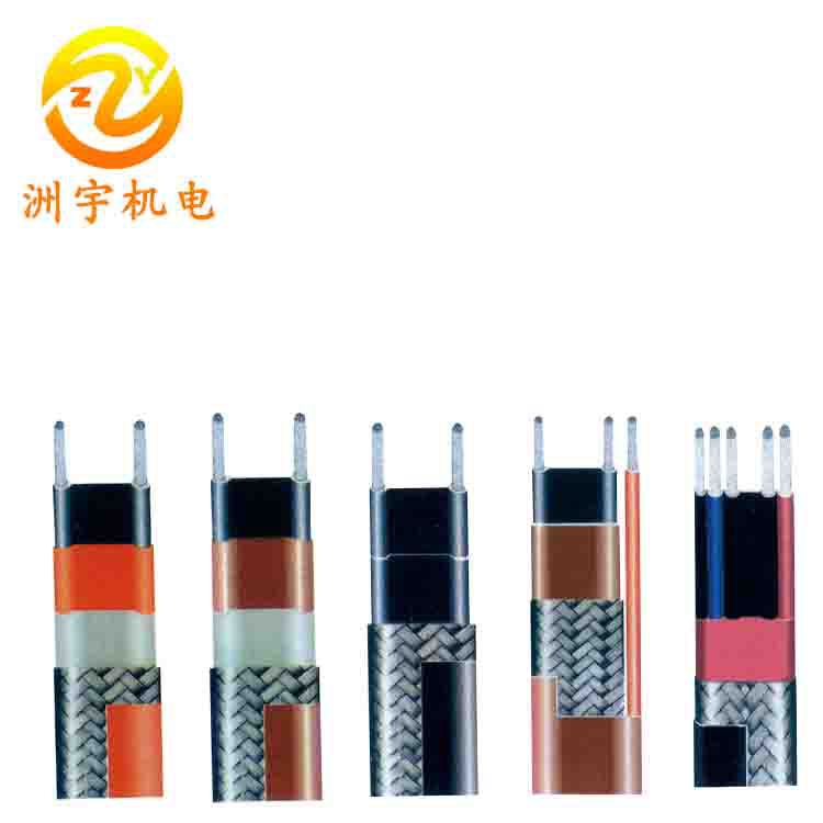 在兩個平行導線中間充填PTC高分子導電塑料作芯帶,其中高分子塑料的基體材料起骨架和填料載體的作用,無機導體填料是電流載體在絕緣體中形成連通的導電網(wǎng)絡(luò),起電流通后發(fā)熱,以補償管道的散熱損失。